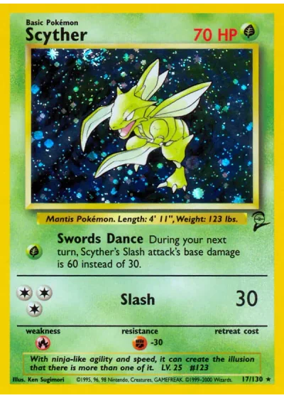 During your next turn, Scyther's Slash attack's base damage is 60 instead of 30.