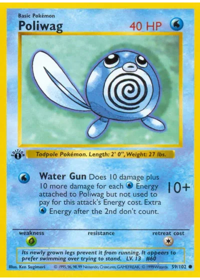 Does 10 damage plus 10 damage for each Energy attached to Poliwag but not used to pay for this attack's Energy cost. Extra Energy after the end don't count.