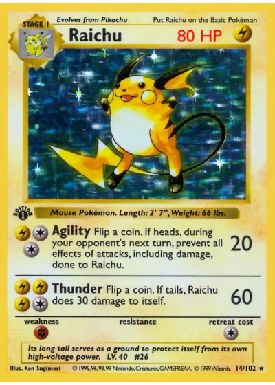 Flip a coin. If heads, during your opponent's next turn, prevent all effects of attacks, including damage, done to Raichu.