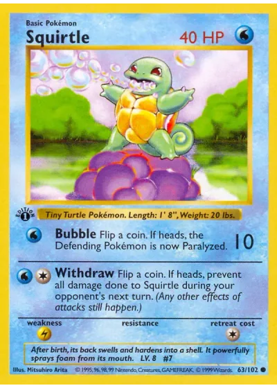 Flip a coin. If heads, prevent all damage done to Squirtle during your opponent's next turn. (Any other effects of attacks still happen.)