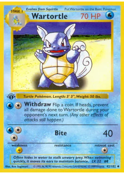 Flip a coin. If heads, prevent all damage done to Wartortle during your opponent's next turn. (Any other effects of attacks still happen.)
