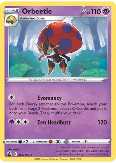 For each Energy attached to this Pokémon, search your deck for a Stage 2 Pokémon, except Orbeetle, and put it onto your Bench. Then, shuffle your deck.