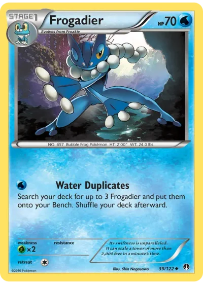 Search your deck for up to 3 Frogadier and put them onto your Bench. Shuffle your deck afterward.