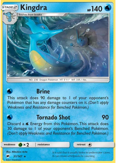 Discard a Water Energy from this Pokémon. This attack does 30 damage to 1 of your opponent’s Benched Pokémon. (Don’t apply Weakness and Resistance for Benched Pokémon.)