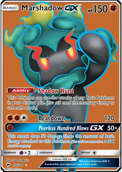 This attack does 50 damage times the amount of basic Energy attached to this Pokémon. (You can’t use more than 1 GX attack in a game.)