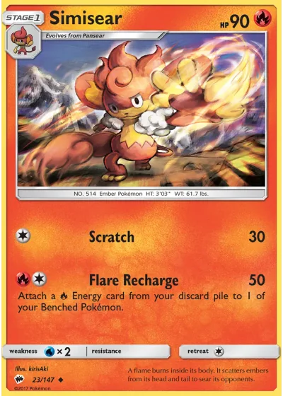 Attach a Fire Energy card from your discard pile to 1 of your Benched Pokémon.