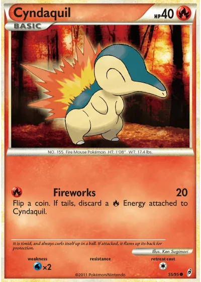 Flip a coin. If tails, discard a Fire Energy attached to Cyndaquil.