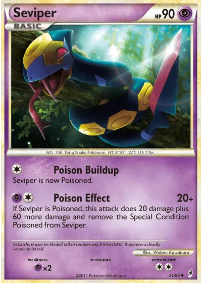 If Seviper is Poisoned, this attack does 20 damage plus 60 more damage and remove the Special Condition Poisoned from Seviper.