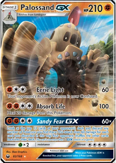 Look at the top 13 cards of your opponent’s deck and discard any number of Pokémon you find there. This attack does 60 damage for each card you discarded in this way. Your opponent shuffles the other cards back into their deck. (You can’t use more than 1 GX attack in a game.)
