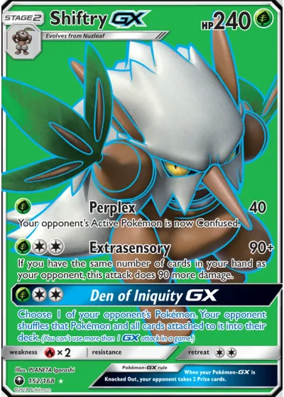 Choose 1 of your opponent’s Pokémon. Your opponent shuffles that Pokémon and all cards attached to it into their deck. (You can’t use more than 1 GX attack in a game.)