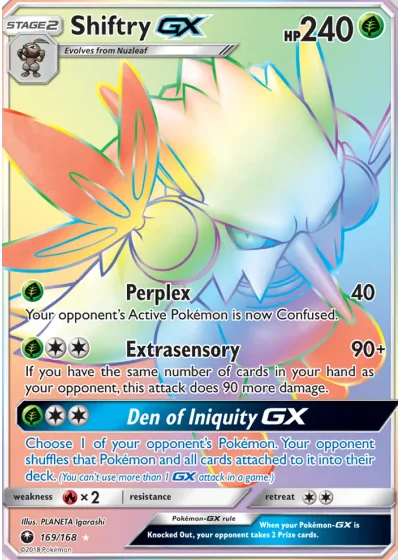 Choose 1 of your opponent’s Pokémon. Your opponent shuffles that Pokémon and all cards attached to it into their deck. (You can’t use more than 1 GX attack in a game.)