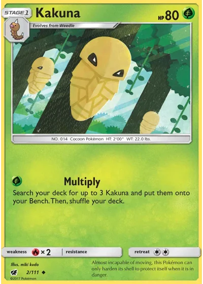 Search your deck for up to 3 Kakuna and put them onto your Bench. Then, shuffle your deck.