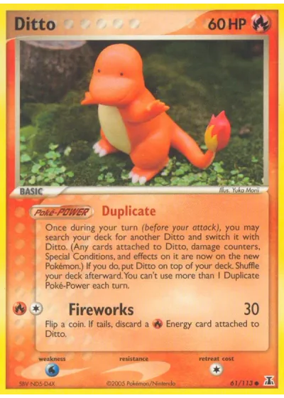 Flip a coin. If tails, discard a Fire Energy card attached to Ditto.