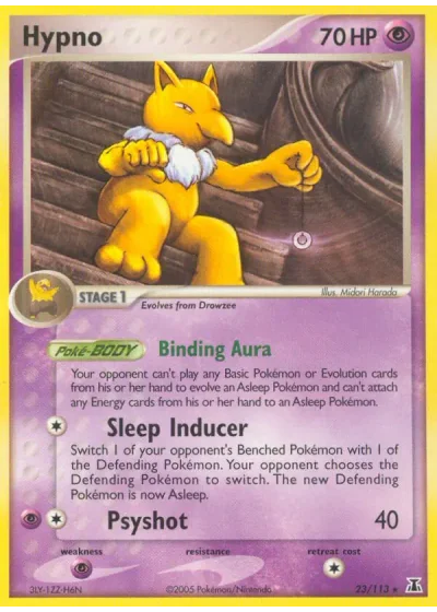 Switch 1 of your opponent's Benched Pokémon with 1 of the Defending Pokémon. Your opponent chooses the Defending Pokémon to switch. The new Defending Pokémon is now Asleep.