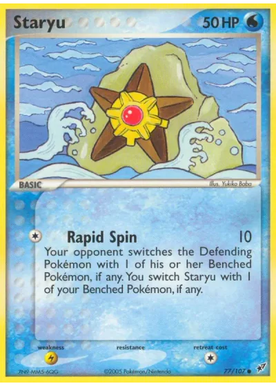 Your opponent switches the Defending Pokémon with 1 of his or her Benched Pokémon, if any. You switch Staryu with 1 of your Benched Pokémon, if any.