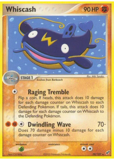 Flip a coin. If heads, this attack does 10 damage for each damage counter on Whiscash to each Defending Pokémon. If tails, this attack does 10 damage for each damage counter on Whiscash to the Defending Pokémon.