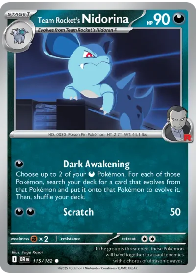 Choose up to 2 of your {D} Pokémon. For each of those Pokémon, search your deck for a card that evolves from that Pokémon and put it onto that Pokémon to evolve it. Then, shuffle your deck.