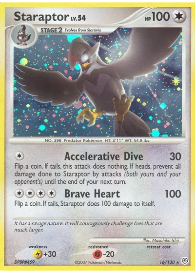 Flip a coin. If tails, this attack does nothing. If heads, prevent all damage done to Staraptor by attacks (both yours and your opponent's) until the end of your next turn.