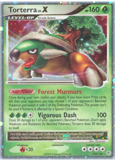 Does 30 damage to 1 of your opponent's Benched Pokémon. (Don't apply Weakness and Resistance for Benched Pokémon.) Torterra does 30 damage to itself.