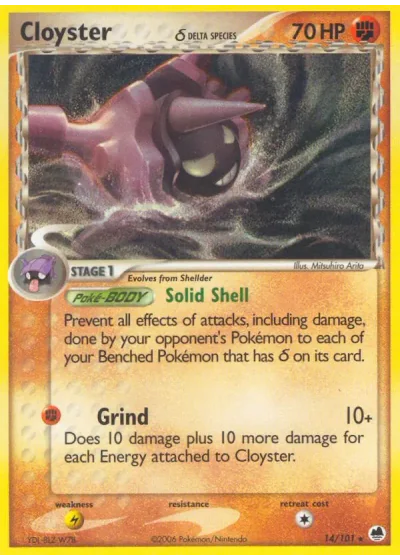 Does 10 damage plus 10 more damage for each Energy attached to Cloyster.