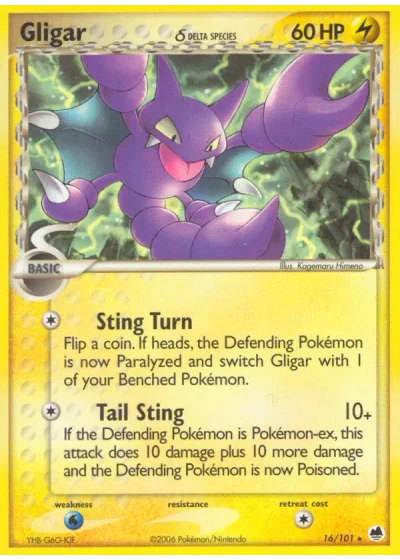 Flip a coin. If heads, the Defending Pokémon is now Paralyzed and switch Gligar with 1 of your Benched Pokémon.