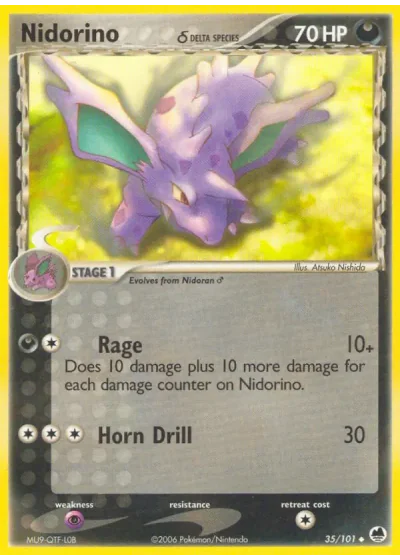 Does 10 damage plus 10 more damage for each damage counter on Nidorino.
