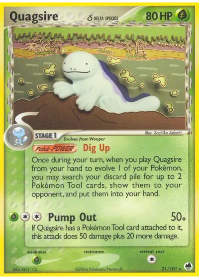 If Quagsire has a Pokémon Tool card attached to it, this attack does 50 damage plus 20 more damage.