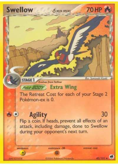 Flip a coin. If heads, prevent all effects of an attack, including damage, done to Swellow during your opponent's next turn.