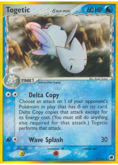 Choose an attack on 1 of your opponent's Pokémon in play that has δ on its card. Delta Copy copies that attack except for its Energy cost. (You must still do anything else required for that attack.) Togetic performs that attack.