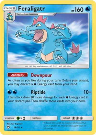 This attack does 20 more damage for each Water Energy card in your discard pile. Then, shuffle those cards into your deck.