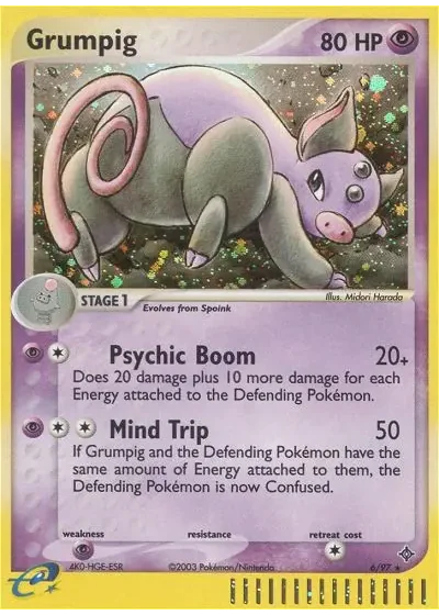 If Grumpig and the Defending Pokémon have the same amount of Energy attached to them, the Defending Pokémon is now Confused.