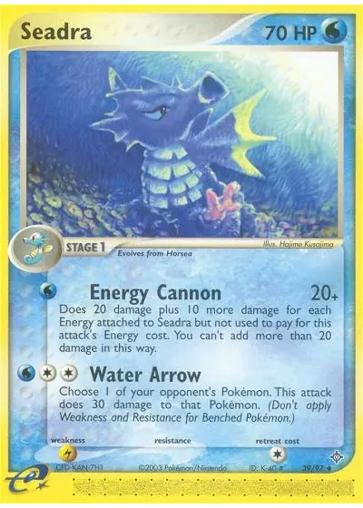 Does 20 damage plus 10 more damage for each Energy attached to Seadra but not used to pay for this attack's Energy cost. You can't add more than 20 damage in this way.