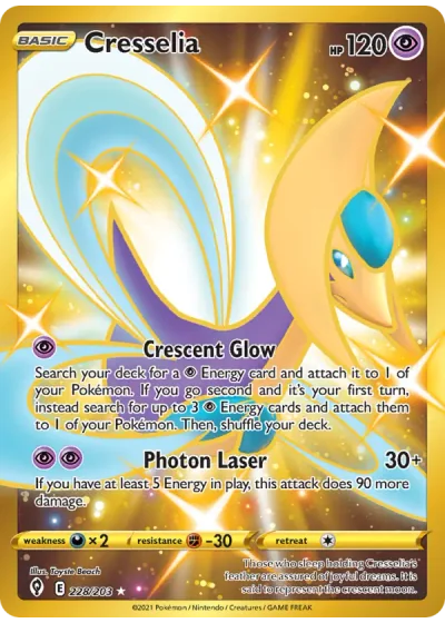 Search your deck for a Psychic Energy card and attach it to 1 of your Pokémon. If you go second and it's your first turn, instead search for up to 3 Psychic Energy cards and attach them to 1 of your Pokémon. Then, shuffle your deck.