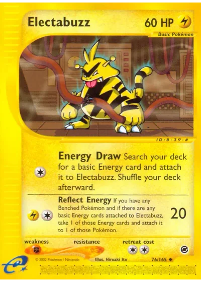 If you have any Benched Pokémon and if there are any basic Energy cards attached to Electabuzz, take 1 of those Energy cards and attach it to 1 of those Pokémon.