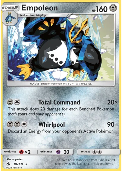 This attack does 20 damage for each Benched Pokémon (both yours and your opponent’s).