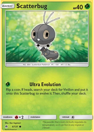 Flip a coin. If heads, search your deck for Vivillon and put it onto this Scatterbug to evolve it. Then, shuffle your deck.