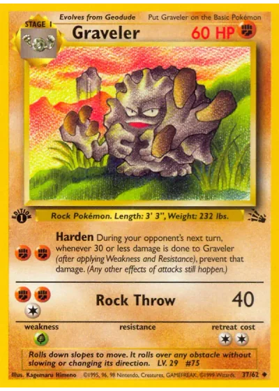 During your opponent's next turn, whenever 30 or less damage is done to Graveler (after applying Weakness and Resistance), prevent that damage. (Any other effects of attacks still happen.)