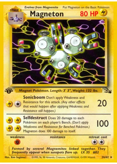 Does 20 damage to each Pokémon on each player's Bench. (Don't apply Weakness and Resistance for Benched Pokémon.) Magneton does 100 damage to itself.