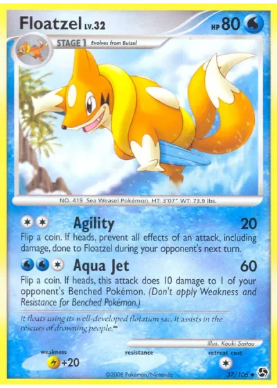 Flip a coin. If heads, prevent all effects of an attack, including damage, done to Floatzel during your opponent's next turn.