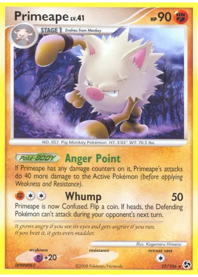 Primeape is now Confused. Flip a coin. If heads, the Defending Pokémon can't attack during your opponent's next turn.