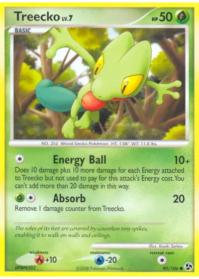 Does 10 damage plus 10 more damage for each Energy attached to Treecko but not used to pay for this attack's Energy cost. You can't add more than 20 damage in this way.
