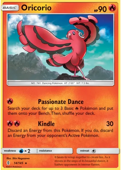 Search your deck for up to 3 Basic Fire Pokémon and put them onto your Bench. Then, shuffle your deck.