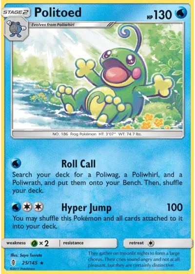 Search your deck for a Poliwag, a Poliwhirl, and a Poliwrath, and put them onto your Bench. Then, shuffle your deck.