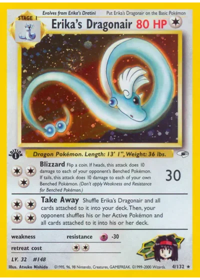 Shuffle Erika's Dragonair and all cards attached to it into your deck. Then, your opponent shuffles his or her Active Pokémon and all cards attached to it into his or her deck.