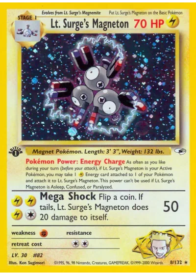Flip a coin. If tails, Lt. Surge's Magneton does 20 damage to itself.