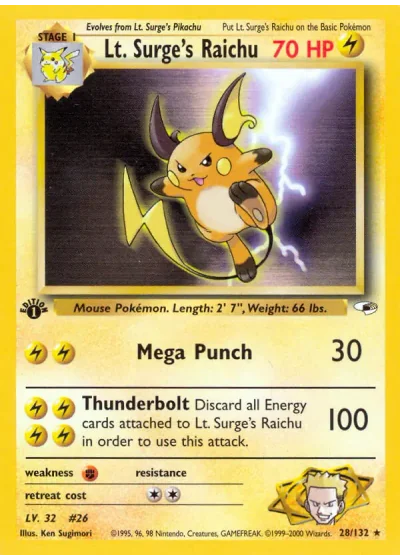 Discard all Energy cards attached to Lt. Surge's Raichu in order to use this attack.