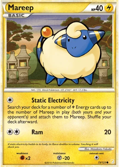 Search your deck for a number of Lightning Energy cards up to the number of Mareep in play (both yours and your opponent’s) and attach them to Mareep. Shuffle your deck afterward.