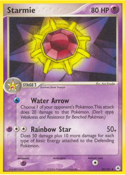 Does 50 damage plus 10 more damage for each type of basic Energy attached to the Defending Pokémon.