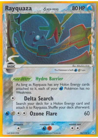 Search your deck for a Holon Energy card and attach it to Rayquaza. Shuffle your deck afterward.