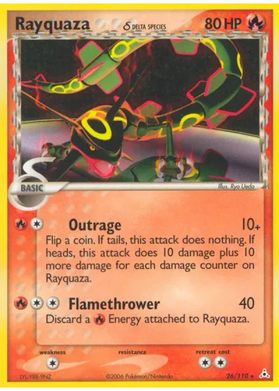 Flip a coin. If tails, this attack does nothing. If heads, this attack does 10 damage plus 10 more damage for each damage counter on Rayquaza.